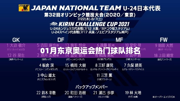 随着XXXX年的脚步日益临近,全球的目光都聚焦在了即将到来的东京奥运会上,在众多参赛队伍中,有几支球队备受瞩目,成为了热门球队,本文将为您带来XXXX年1月东京奥运会热门球队排名,让我们一起看看这些实力强大的队伍。